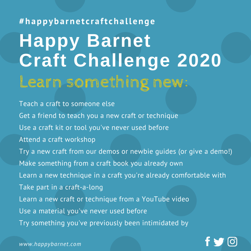 It doesn’t matter what craft(s) you enjoy or how experienced you are, everyone is welcome to join in and our Facebook group is one of the best places to do that. You can also follow our posts on the Happy Barnet Twitter and Instagram accounts. And don’t forget to use the #happybarnetcraftchallenge hashtag so we can see your projects and share them with our other craft challengers….and feature them in our challenge galleries!!!