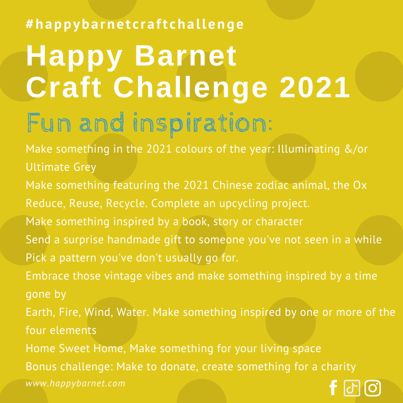 It’s year FOUR of the Happy Barnet Craft Challenge!! And after 2020 I think we are all looking forward to some positive things to focus on. I don’t know about you but crafting was certainly something that helped me in through the various lockdowns we’ve had so far.